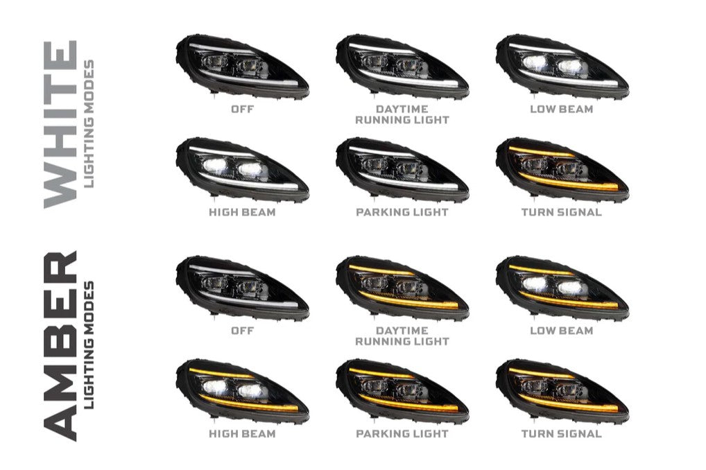 - Functions: Low Beam, High Beam, Parking Light, Turn Signal, Welcome Sequence (EVO Only), Daytime Running Light (DRL)